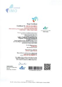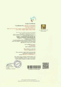 Our farms have various organic certifications issued by APEDA such as NPOP, Nop, USDA and JAS. Our Processing Unit and trading facilities are also certified by APEDA.